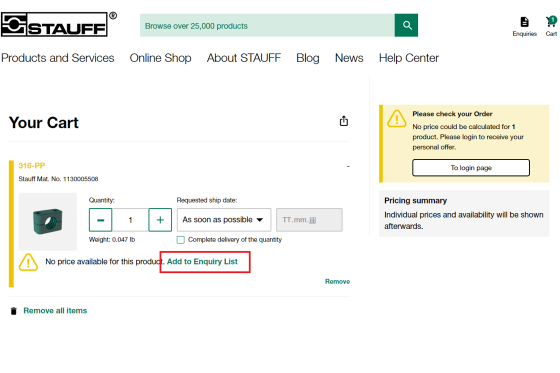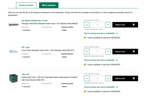 ⚠️ Tiene también la opción de solicitar su precio individual de esta manera. Añada otra información y archivos (p. ej. dibujos técnicos) a su consulta o facilite su número de pedido, para poder añadir al pedido los productos deseados.