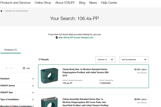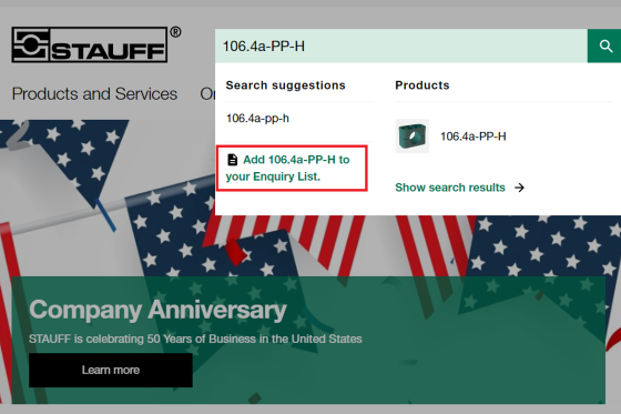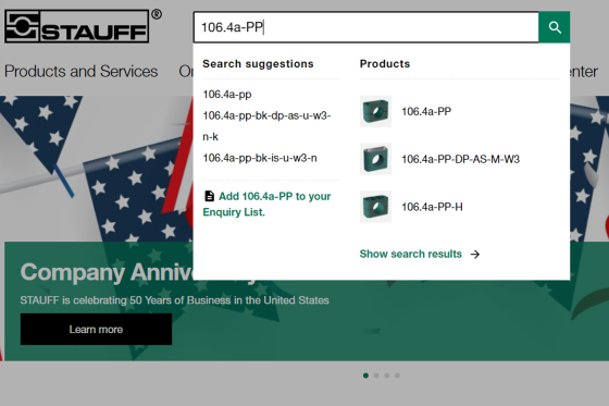 + para clientes: Busque sus propios números de material si han sido introducidos en el sistema STAUFF.