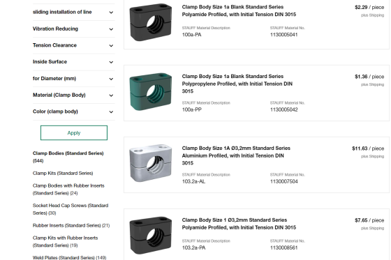 - Información de producto variada , p. ej. material, estándar, unidad de embalaje, número de tarifa aduanera, país de origen y mucho más