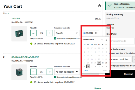 especifique la fecha de envío preferida