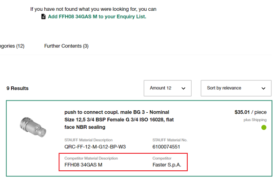 - Información de producto varia, p. ej. material, estándar, unidad de embalaje, número de tarifa aduanera, país de origen y mucho más